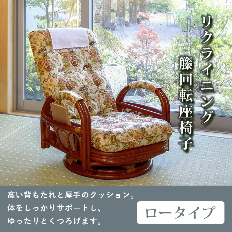 背部は3段階リクライニング、座面は360度回転式でサイドポケット付き商品詳細サイズ(約)幅65×奥行65〜88×高さ56〜69×座面高20cm ■回転式 ■背部:ギア式3段階リクライニング(フラット含む) ■サイドポケット付材質主材:籐 張地:ポリエステルカラーブラウン送料について■送料 送料無料。
