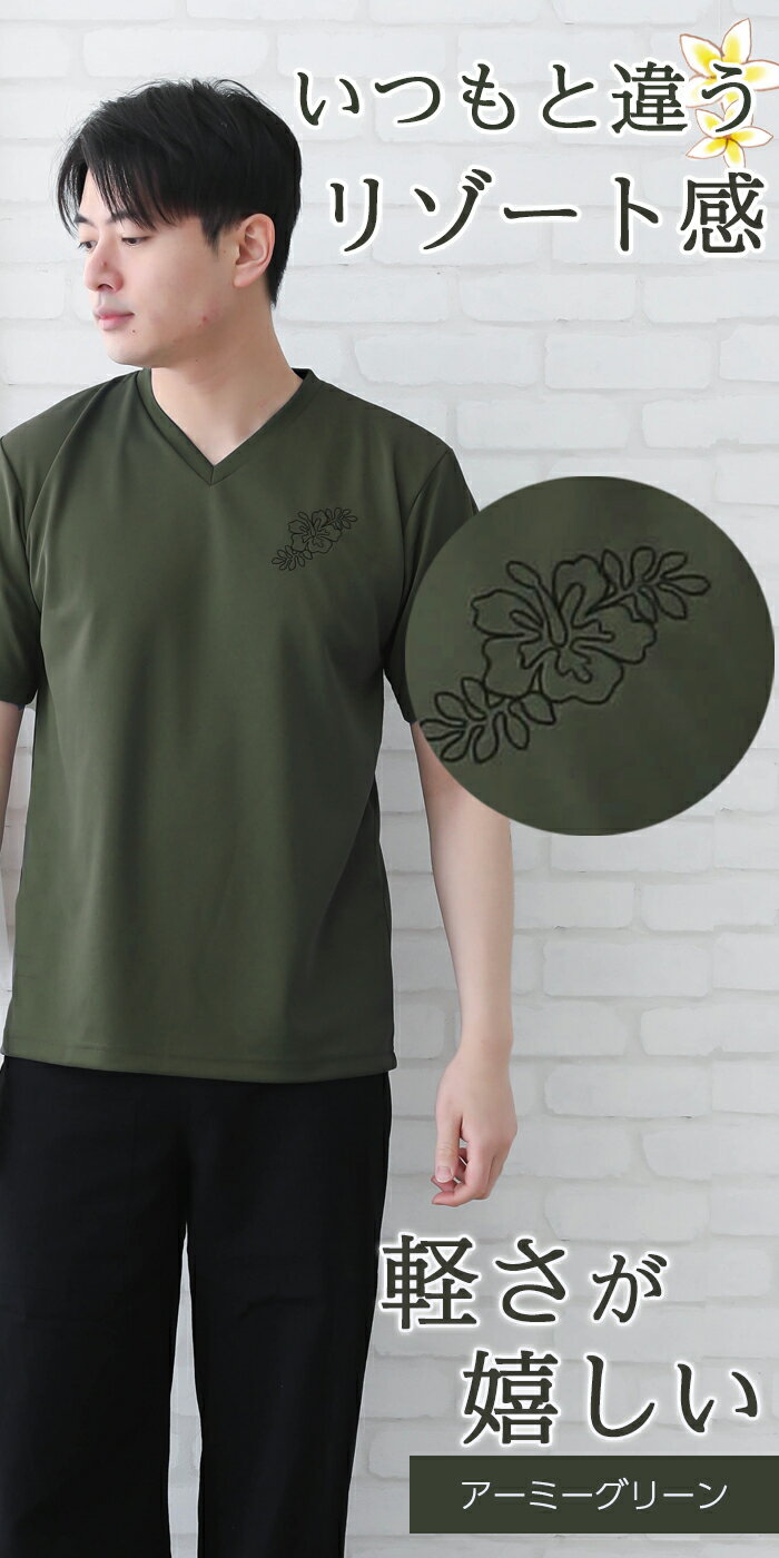商品名メンズ 手書き風ハイビスカス刺繍! VネックドライTシャツ素材ポリエステル100%サイズSS、S、M、L、LL、3L、4L、7Lカラーホワイト、ブラック、レッド、オレンジ、ネイビー、ロイヤルブルー、ターコイズ、アーミーグリーン、バーガンディ、ホットピンク、ライム、ダークグレー原産国Tシャツ:中国 刺繍:日本おすすめポイント〇Vネックで襟元すっきり!ドライ素材で軽くて快適な肌触り! 〇吸汗速乾、通気性、UVカットも備えた機能性抜群のTシャツです。