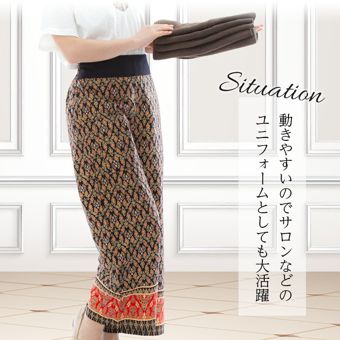 【セール開始4h限定クーポンあり】アジアン エステ ユニフォーム 制服 ボトムス ゴージャス感満点 タイの伝統的柄 ロングパンツ タイパンツ レディース ゴム エスニック エステ マッサージ 飲食店 リラクゼーション サロン 整体 ファッション スパ
