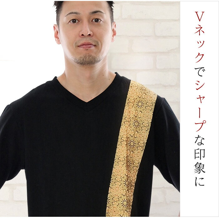 【セール開始4h限定クーポンあり】アジアン ユニフォーム 制服 メンズ Tシャツ 名入れ ネーム 刺繍 タイ伝統的デザインTシャツ 半袖 Vネック エスニック マッサージ セラピスト リラクゼーション 整体 サロン ブラック