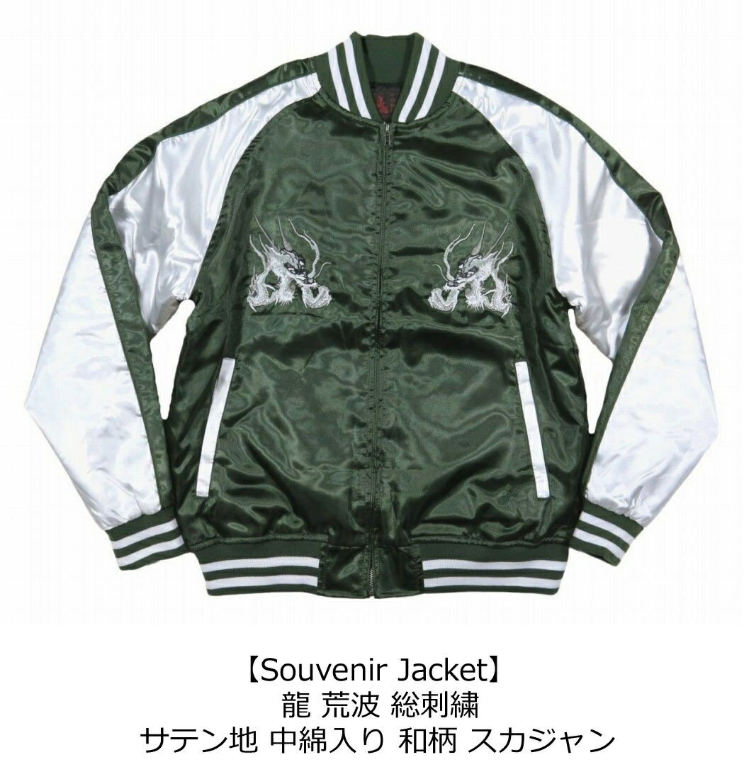 新品未使用 龍 荒波 総刺繍 サテン地 中綿入り 和柄 スカジャン 素材表示 表・裏地・リブ・中綿 すべてポリエステル 100% コメント 新品未使用 Souvenir Jacket 龍 荒波 総刺繍 サテン地 中綿入り 和柄 スカジャン スーベニアジャケットです!軽めのアウターとして使い勝手のよい中綿入りのサテン地スカジャンです。