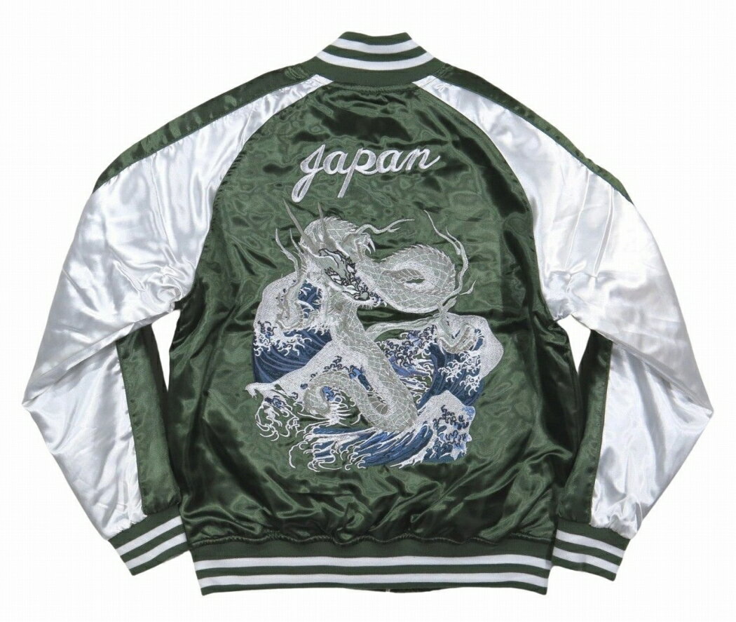 裏地も滑りが良くスムーズに着用していただけます!荒波、大龍に加え『Japan』ロゴが刺繍されたバックデザイン、迫力・存在感のある仕上がりになっています!リーズナブルながらも細かな刺繍を施すなどコストパフォーマンスの高さが魅力の1品です!新品未使用 龍 荒波 総刺繍 サテン地 中綿入り 和柄 スカジャン 素材表示 表・裏地・リブ・中綿 すべてポリエステル 100% コメント 新品未使用 Souvenir Jacket 龍 荒波 総刺繍 サテン地 中綿入り 和柄 スカジャン スーベニアジャケットです!軽めのアウターとして使い勝手のよい中綿入りのサテン地スカジャンです。