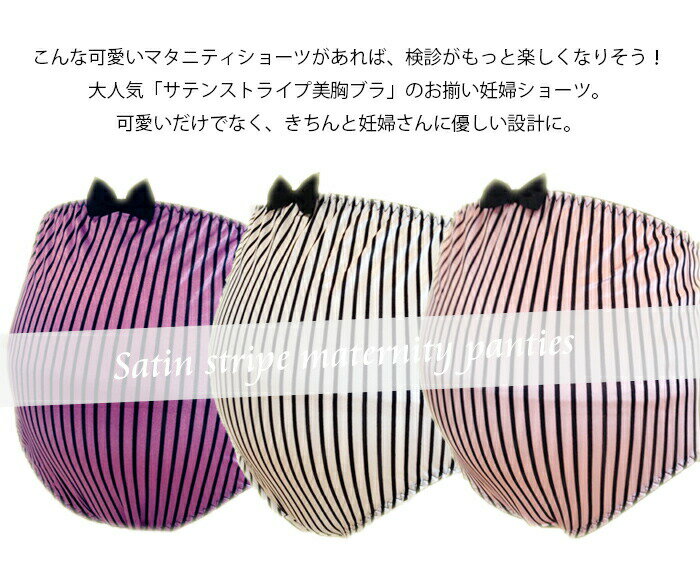 お揃いのサテンストライプブラ&産後ショーツと合わせてとてもおしゃれ! <素材> サテンネット:(身生地)ナイロン95%、ポリウレタン5% <サイズ> マタニティM〜L(腹囲81〜110、ヒップ85〜104) ↓<こちらの商品とお揃いです>↓