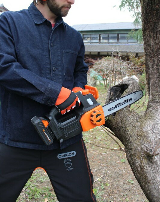 なめらかな切れ味に定評のあるオレゴンチェーン刃を採用!モーターからのパワーをオレゴン刃に余すことなく伝えることで、シリーズNo1の切れ味を実現。