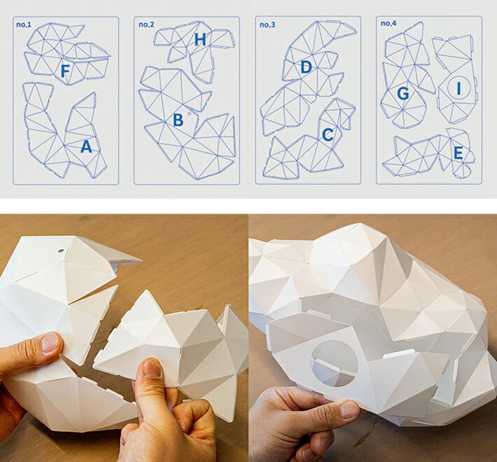 きれいに折れるよう、ガイド線がプレスされており、 折り紙のようにボンド接着なしに組み立てます。